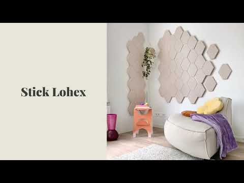 Le Stick Lohex est un élément mural acoustique en forme d'hexagone spécial, disponible en trois modules : Petit (13 x 11), moyen (26 x 23) et grand (52 x 45). En alternant différentes modules, couleurs et épaisseurs, vous créez un design unique !